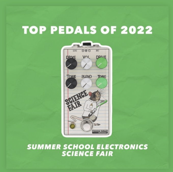 I regularly use the Gus Drive, Gus Plus, Snow Day Delay, and Science Fair pedals from Mark at Summer School on all my boards. Our collaboration on the Science Fair was a Top 10 pedal of 2022 according to the JHS Show!
