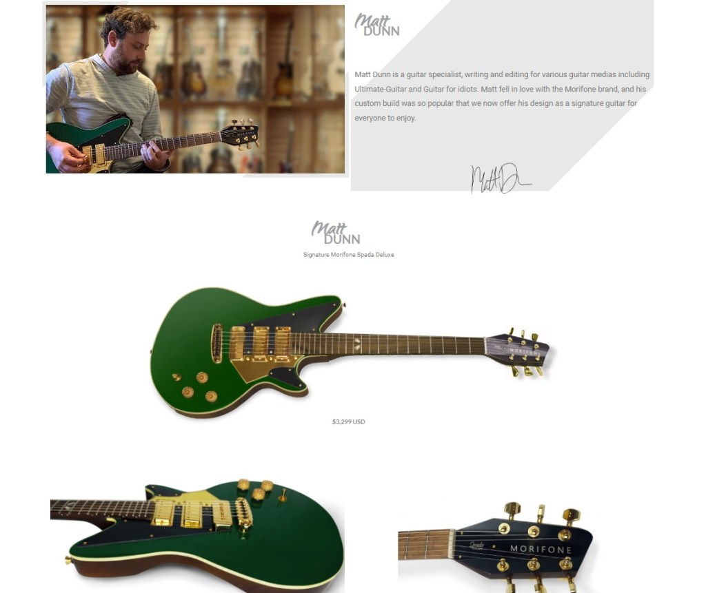 I partnered with one of my good friends, and favorite luthiers, Ren Buffoni on my signature Morifone Spada. A unique take on HSS, it has two mini humbuckers in the neck and middle position, while a soapbar P90 is in the bridge, all controlled by a freeway switch with 6 positions. I’ll use this in a ton of videos throughout the year, but mostly use it for my personal, original music recording off screen. Learn more at Morifone’s website!