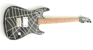 But what’s really unique is Carper’s use of an unbranded spider web Strat during their most recent tours and album cycle. What many people may have suspected is some kind of custom made instrument is really just a re-purposed Rocker RG-80-SW guitar that historically was sold by Costco, the giant wholesale chain. According to a Premier Guitar Rig Rundown, Carper found it laying in a California guitar shop, was attracted to the light weight, and took it home after 15 years of neglect in the store. Zac replaced the low-quality pickup with a Tone Zone humbucker and recently learned it has a push-pull volume knob for coil splitting.