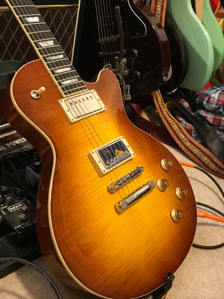 The feel of the neck is just phenomenal, slim as you approach the nut and getting just a bit bigger as you move to higher frets. It’s a far cry from the baseball bat necks that some people prefer on LP’s that I dislike. Now, it’s not a super slim, fast neck that will appease shredders, but it feels far more comfortable for any player’s hands than some of those old Gibson’s. The tuning stability was overall pretty good, it did not go out of tune until you really started bending the strings. Leaving it in the case overnight or out on my guitar rack didn’t have the strings slipping at all. Like a lot of Gibson’s though, the break angle of the string into the nut isn’t as bend/heavy pick attack friendly as some other classic guitar brands.