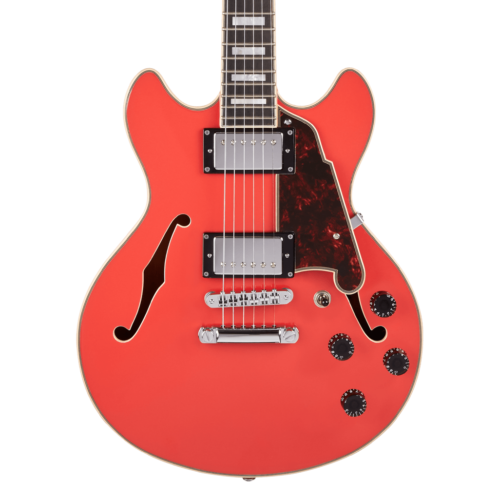 One of D’Angelico’s many new 2020 guitars, the Premier Mini DC takes their popular Premier DC and brings it down to a more compact size. Much like how a Gibson ES-339 is a shrunken ES-335, smaller profile players can now enjoy a fine D’Angelico semi-hollow. The 14″ wide body also has a smaller headstock before returning to more traditional D’Angelico specs. Multi-ply binding surrounds a laminated Maple body with a Spruce top. Tune-o-matic and stop bar tailpiece provide a reliable and familiar bridge system paired to Rotomatic Stairstep tuners. The 25″ scale length makes the Premier Mini DC an excellent in-between option for Gibson or Fender players.