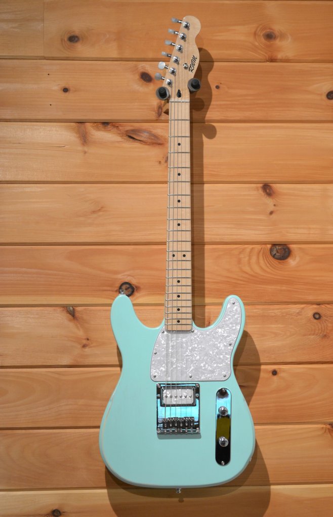 It also has a GFS Dream P90 pickup in it, and a very thin/fast Maple neck that is Fender scale but almost shred-like in shape. Lastly, anything that is surf or seafoam green gets a lot of love from me, like the new DeLonge Strat I reviewed. So naturally I fell in love with this Fender meets Les Paul Junior creation.
