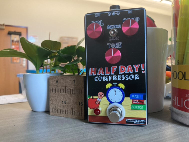 With their third release of 2023 Summer School has brought a truly new pedal into their lineup. While their previous two could be seen as remakes of their classic fuzz and drive circuits, the new Half Day! marks the company’s first compressor pedal.
