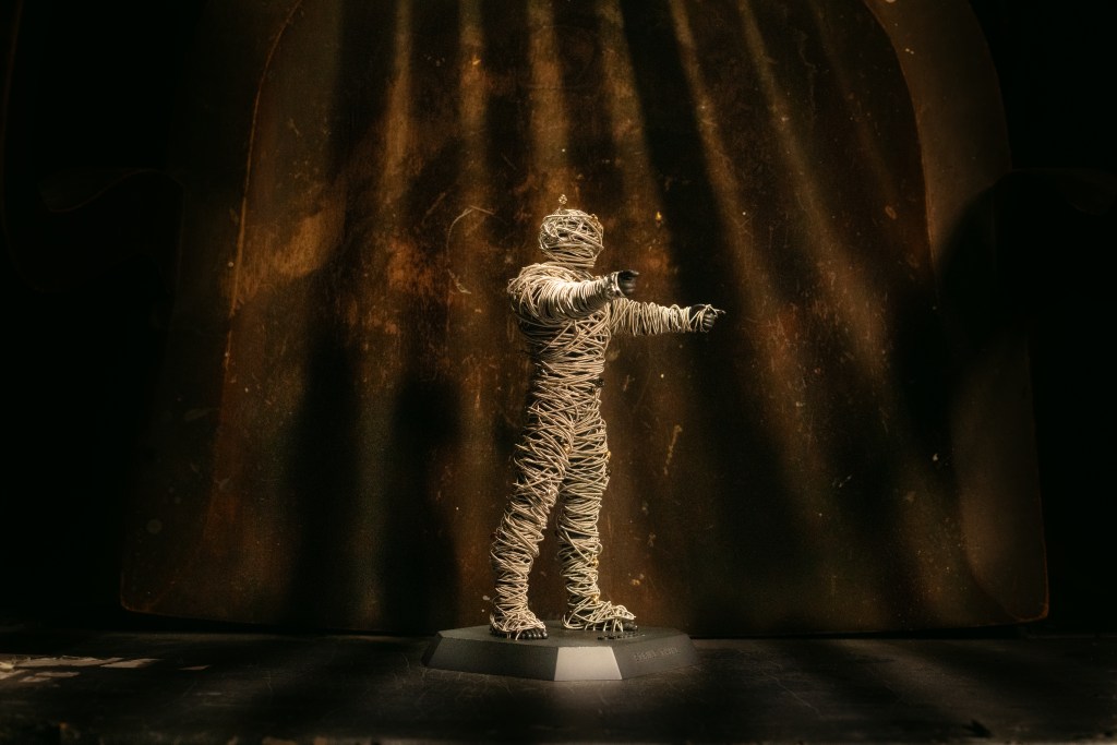 “If you could have the strings off of the studio recording of some old record, what’s that worth to you? I was at a show side stage talking to a tech who was restringing a guitar and when he opened his drawer it was full of coiled up strings with gaff tape on them, with whatever venue and date. He said ‘these are all the strings, I collect them, it’s my thing’. Right away I thought about the responsible handling of them and then the collectibility of them. If I could get Kirk Hammett’s strings from Madison Square Garden that would probably be worth a lot of money, right? So I took some of the strings and just started wrapping them around an old action figure. It kind of became FRET12’s mascot. Don’t throw away those strings and let them end up in a landfill or the String Thing’s gonna come for you”.